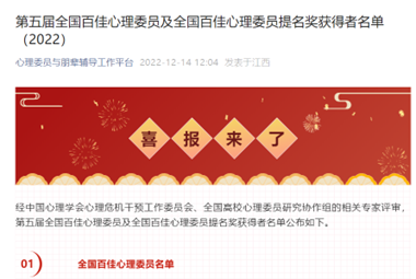 会前,评审专家参照学校心理委员参加知识技能的学习培训情况、心理委员工作开展情况和参加特色心理健康教育活动情况等维度对心理委员们开展评比。经自主申报、学校选拔推荐、大会评审等环节,会议公布并表彰了第五届全国高校“百佳心理委员”及“百佳心理委员”提名奖名单。永利官网大学生心理健康互助委员会负责人陈志华同学在全国的心理委员中脱颖而出,荣获“全国高校百佳心理委员”荣誉称号。