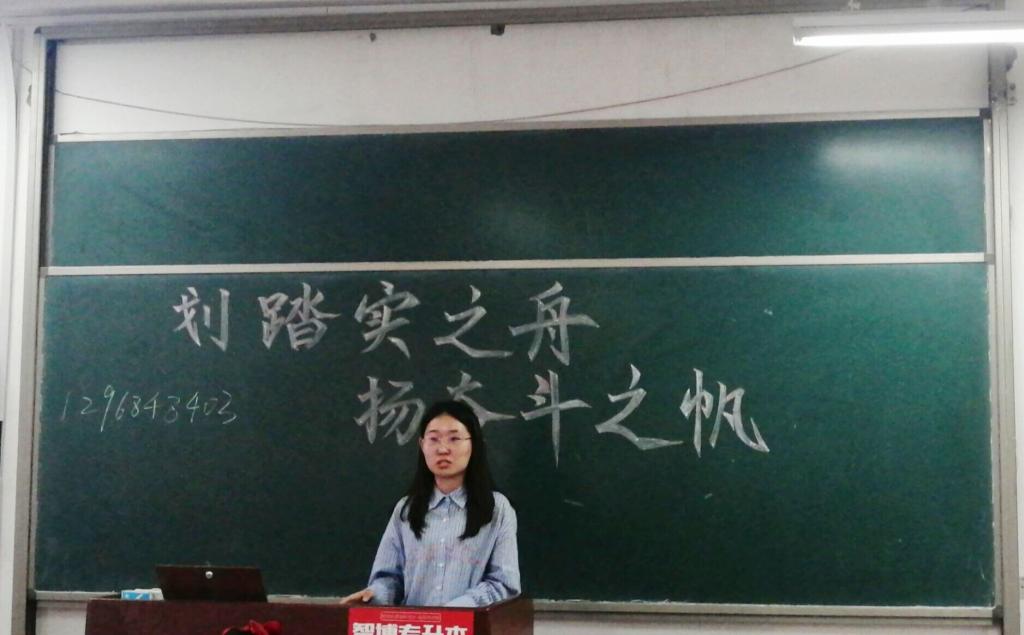 韩晓娇就个人综合能力提升与培养方面展开分享,着重讲述时间的宝贵和专业课学习的重要性,鼓励同学们“明确初心,不念过往,努力当下,拼个未来”。