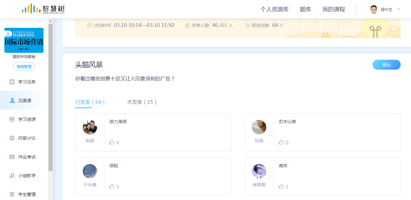 在讨论交流环节,与会教师结合自身实际,就前四周的线上教学工作进行了发言与讨论。在充分利用网络教学平台方面,孙建华老师首先进行了经验分享。她采用SPOC平台+直播的形式,提出课前十分钟发布慕课堂公告的建议,同时通过将学生的录屏作业上传至中国大学MOOC平台,让学生能够在平台欣赏到自己或他人的作品,提高了学生的学习积极性。徐晶老师利用SPOC异步功能,结合课程实际需要,替换、修改源课程资源,通过精心设计的练习和测验,发现学生在线上教学学习过程中出现的问题,并进行答疑。石磊主任针对线上视频学习任务的时间安排、教师教学活动设计时长、课后任务检查等问题进行了深入探讨。随后,教师们就智慧树平台的弹幕、投票、双向语音互动,慕课堂讨论、作业,QQ群课堂、打卡等功能进行了热烈的讨论,促进在线上教学过程中进一步科学运用各类平台的教学功能,更加合理地安排在线教学流程。